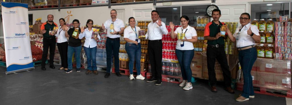 Managua, Nicaragua. En el marco del Día Mundial de la Alimentación, Walmart Nicaragua volvió a llenar de esperanza muchas mesas nicaragüenses al entregar al Banco de Alimentos de Nicaragua 15,700 libras de productos básicos, valorados en más de medio millón de córdobas ($15,000 dólares).